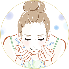 手のひら全体で顔を包み込み、美容成分がお肌の角質層へ浸透するよう促します。