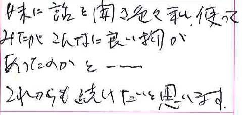 妹に話を聞き色々色々使ってみたがこんなに良い物があったのかと。これからも続けたいと思います。